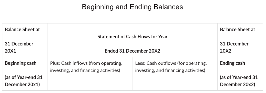 - Statement of Cash Flows—reports the change in an entity’s cash, cash equivalents, and restricted cash between balance sheet dates. The statement classifies cash inflows and outflows during the period as operating, investing, or financing activities. Because the cash flow statement reports performance over a period of time, it is also a “flow” statement, like the income statement.